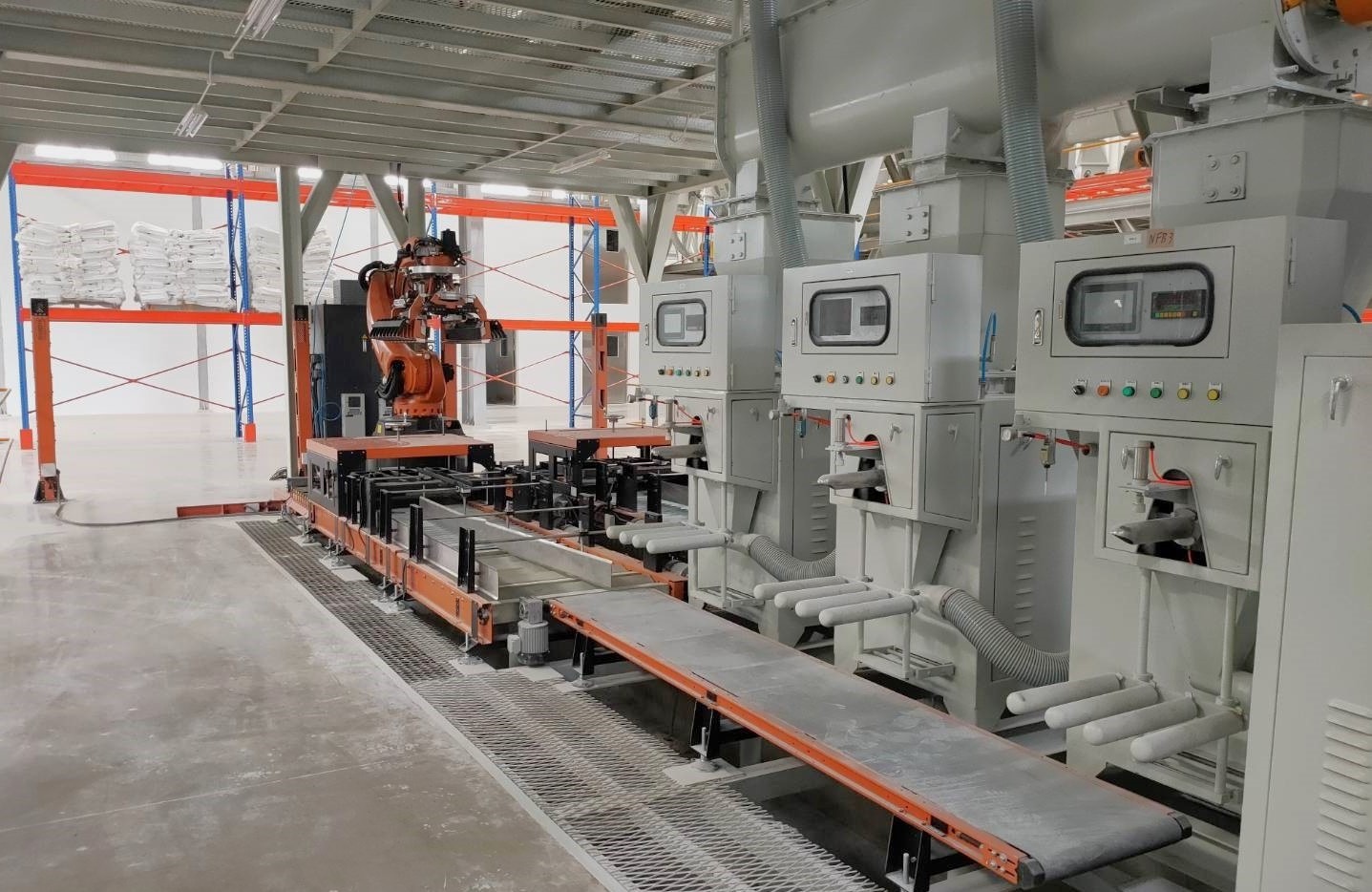 機械手臂疊棧系統它們能夠以極快的速度、一致的方式堆疊產品,比傳統的手工堆疊方法快得多。在包裝階段,頂烽用更短的時間處理更多的產品,減少人力的依賴,降低了勞工成本,提高了生產效率,並確保每個包裝都具有相同的外觀和質量,這對頂烽堅守碳酸鈣產品的一致性和品質控制至關重要。